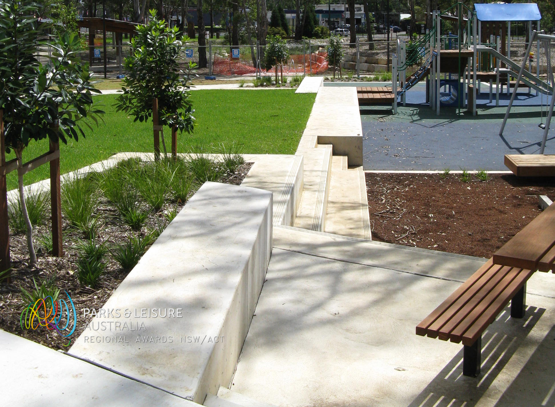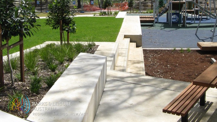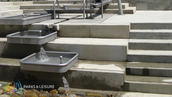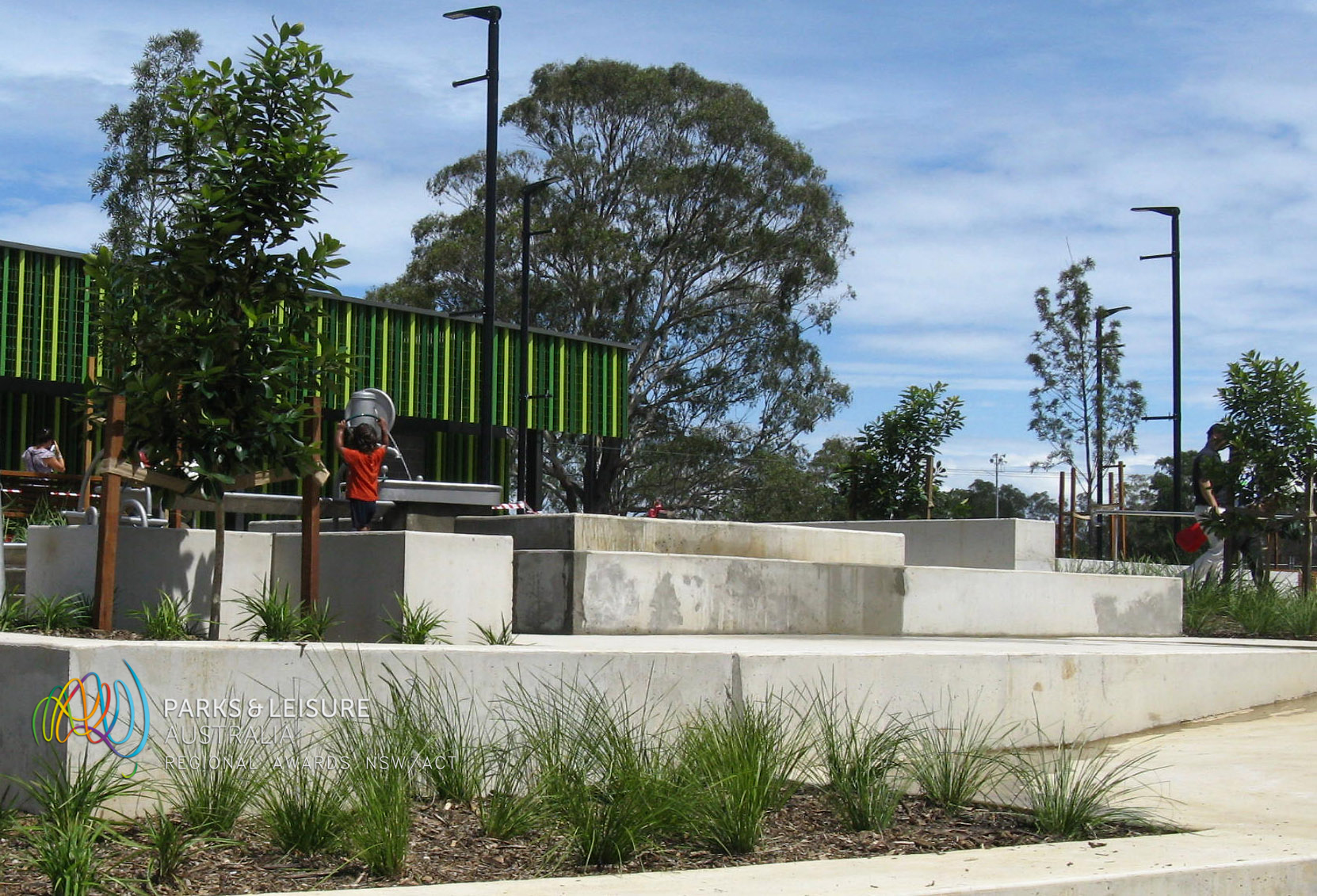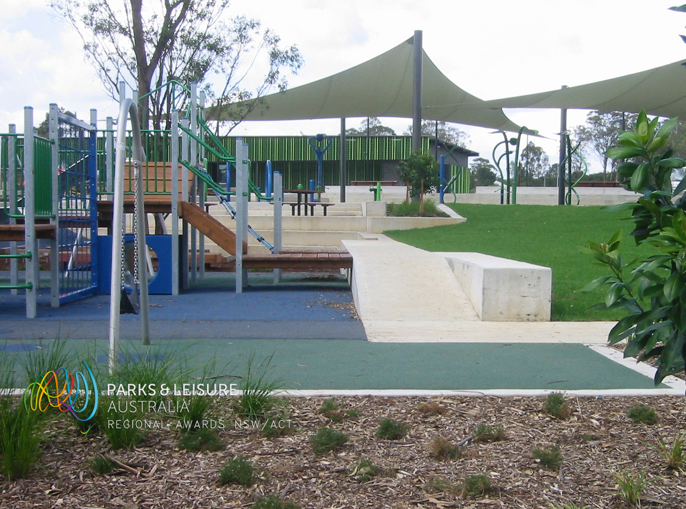 Part of the redevelopment of Blacktown Showground, this $750,000 playground provides a variety of experiences and adventures for different age groups. The junior playground, an imaginatively composed play area, includes exploratory, sensory and creative elements that offer challenges that are accessible and achievable for young children. The senior playground is more challenging with play experiences targeting children aged 8-12 years.  The terraced water playground is a stimulating space and includes troughs & channels with pumps to activate the water for the playground.
