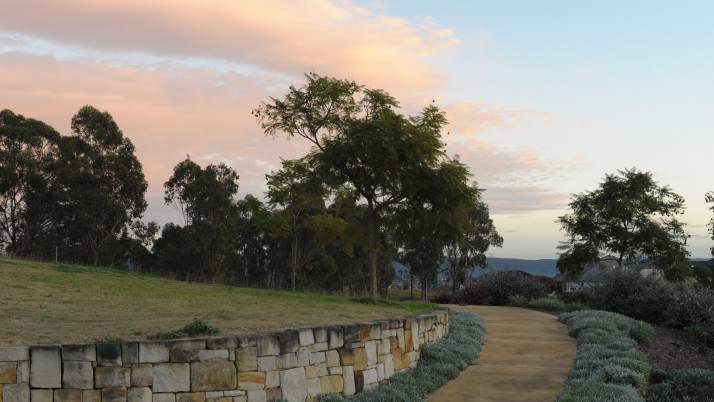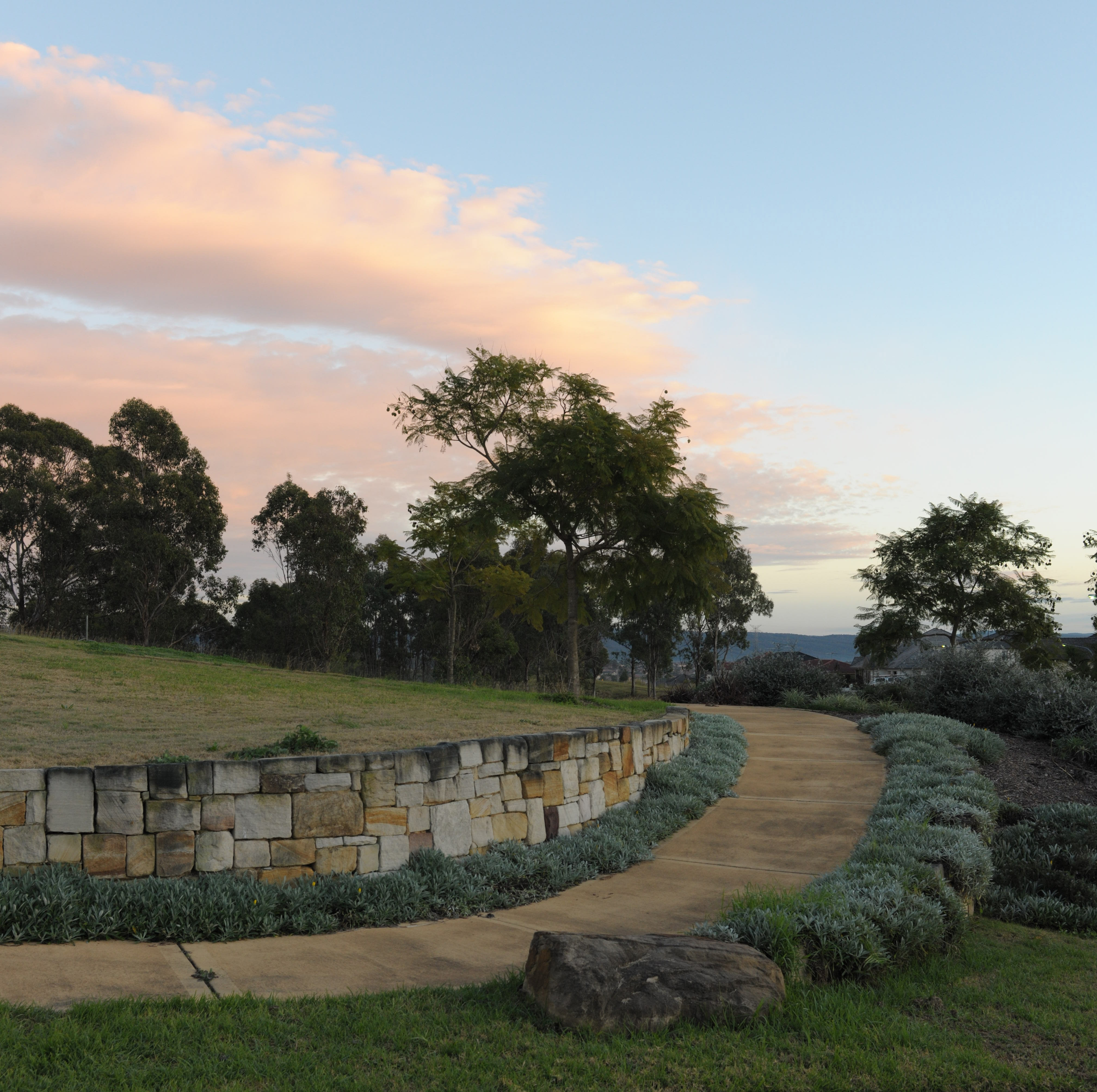 The Master Plan developed for Glenmore Park provides for large areas of open space forming a system of connected parklands. Best practice environmental design techniques were integrated, with wetland design, riparian rehabilitation, creekline reconstruction, bio-engineering & bush regeneration being undertaken along with public education, public art & interpretation.  Pedestrian links, the sales office, children’s playground, street tree design, small parks, entry statements & the display village provide a variety of landscape spaces.